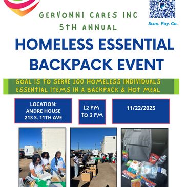 Our 5th Annual, Homeless Essential Backpack event at Andre House. Providing homeless individuals with a hot meal and a backpack filled with hygiene products & non-perishable food items.